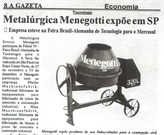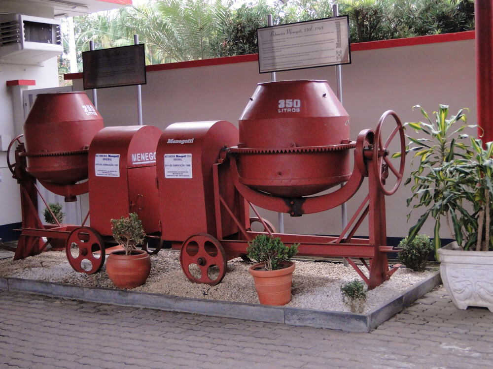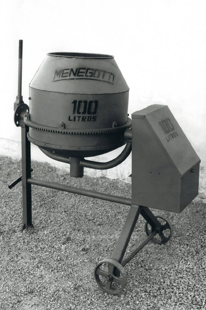 Começando com a produção de machados e ferraduras para cavalo, evoluiu para a primeira betoneira Menegotti.
