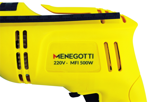 Furadeira de impacto MFI 500W 1/2″ 13mm O conjunto inclui 2 carvões, 1 limitador de profundidade e 1 chave para mandril.